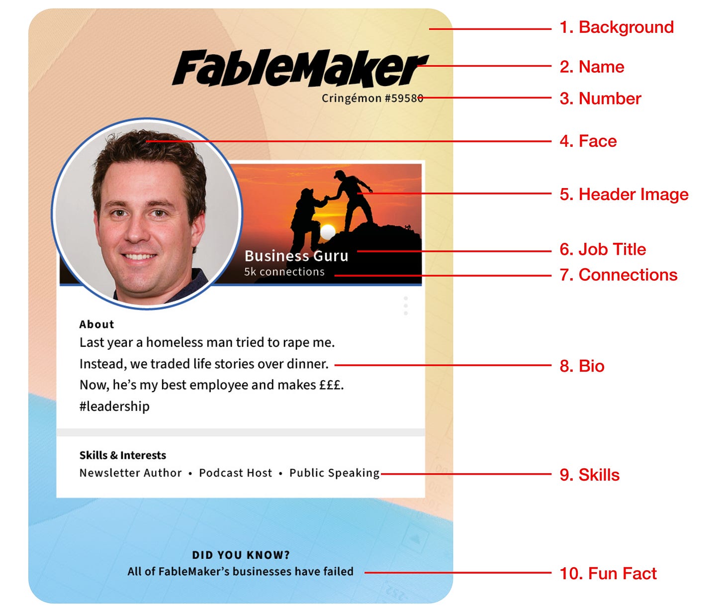 At least the bio was fun - right? GUESS AGAIN. 53 different spiels, condensed into four lines that packed a punch without feeling repetitive. 53 angles satirising LinkedIn culture when there are really only about three in existence. This is why I expanded the project to include office weirdos.