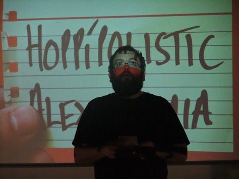From behind the makeshift lectern1, acts offered their own brand of unconventional wisdom. The intention was comedy - not learning.